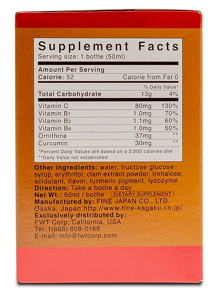 - Water, fructose glucose syrup, erythritol, clam extract powder, trehalose, acidulant, flavor, turmric pigment, lysozyme